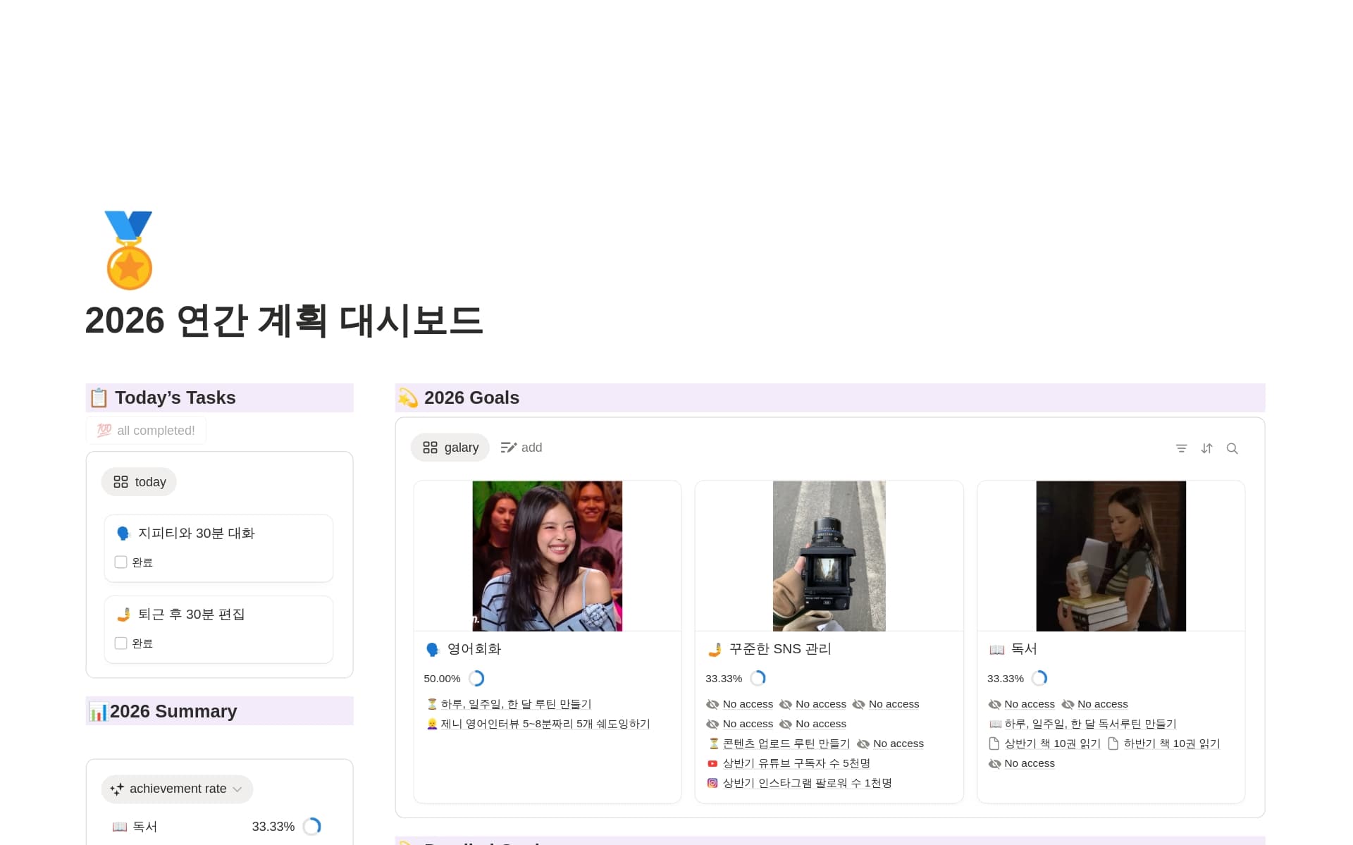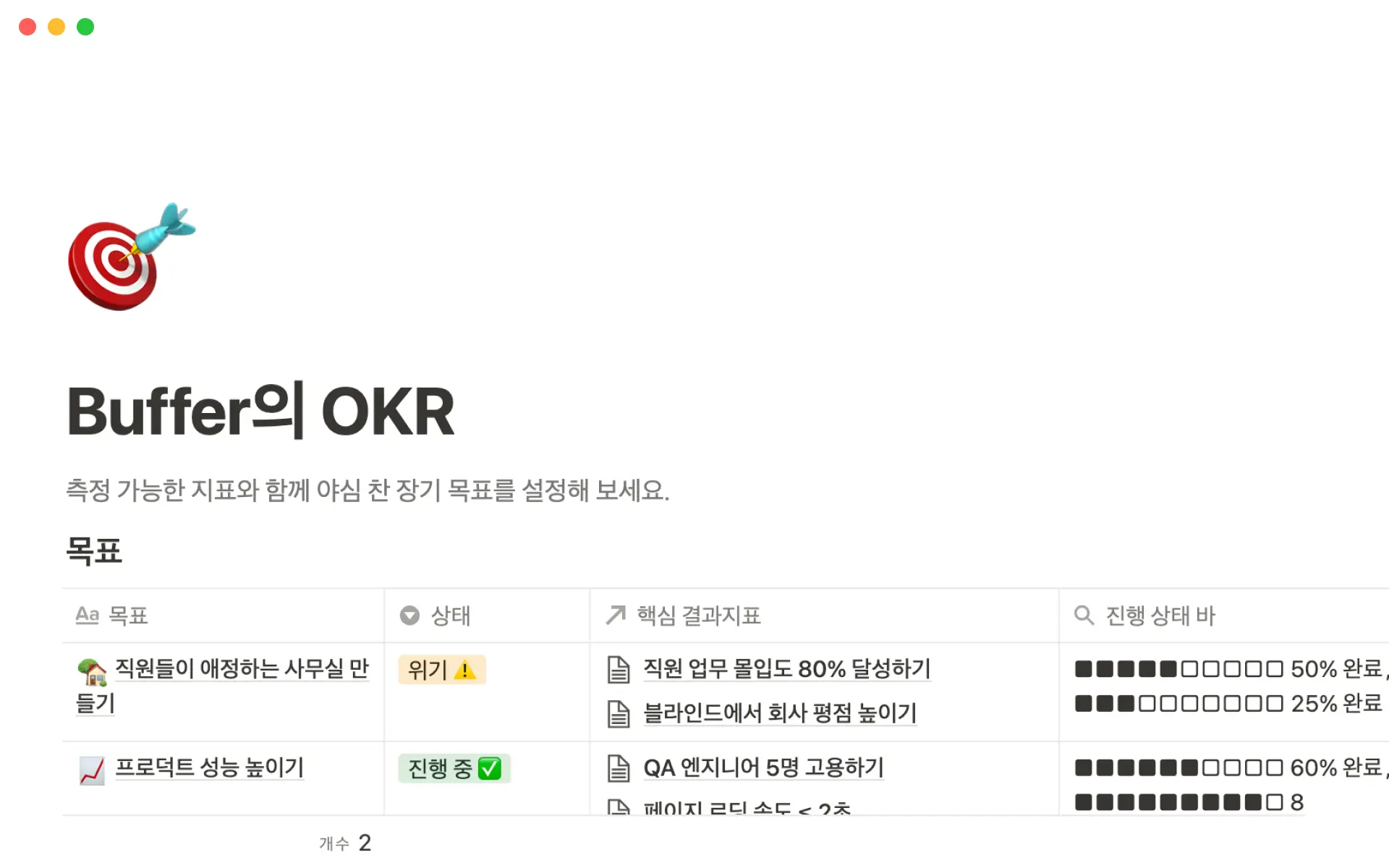 스프레드시트의 템플릿은 빠르지만 일반적으로 정적입니다. Notion 템플릿은 서로 연동, 필터링, 시각화(보드, 타임라인, 캘린더)가 가능한 데이터베이스를 만들며, 프로젝트의 성장에 따라 유연하게 조정할 수 있습니다. Notion을 사용하면 문서, 작업 및 위키를 한곳에서 확인할 수 있어, SaaS 때문에 산만해질 일이 없죠!